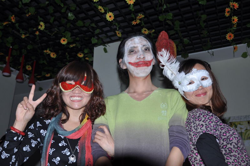 万圣节 Party 气氛很热烈,我感觉很好。想自恋滴贴点自己的照片,但是稍微连累了几位朋友一起出镜了,不过既然都带着面具,应该不怕吧。
