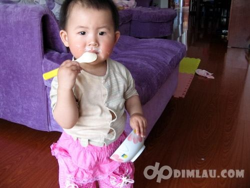 注意,开心的袖子可是她自己要卷起来的哦!每次洗手开心都会主动开始卷袖子,不过始终不得要领所以总是要大人帮忙才行。开心吃东西不喜欢别人打扰,坚持自己动手——虽然自己的效率不高,经常是吃的没有洒得多。