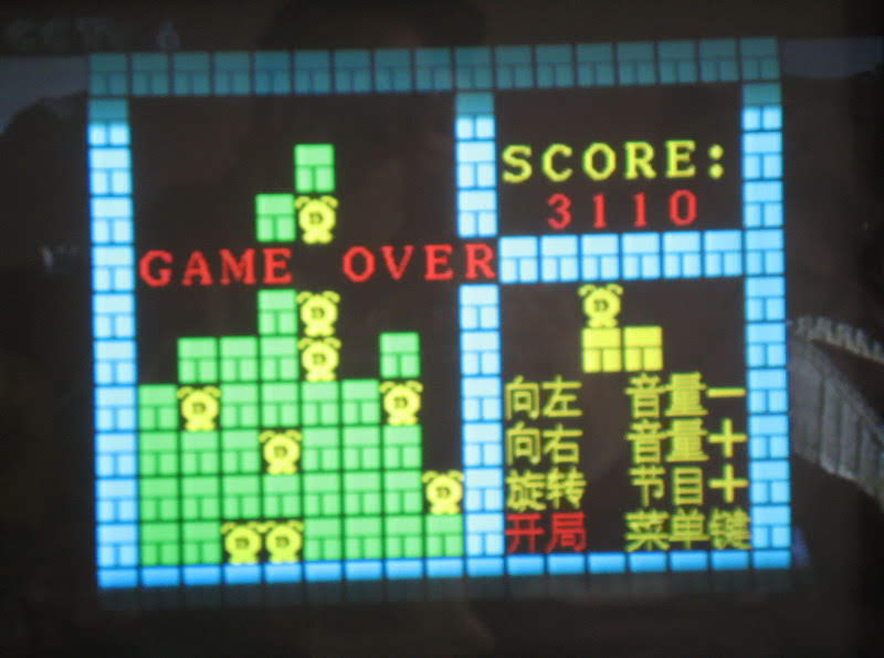 万恶的运营商限制一家只能一台电脑上网,所以,我有时得排队才能轮得上坐在电脑前。排队的时候我就打开这台电视玩这个小游戏,每天挑战自我向新的高分冲刺(看下图)。