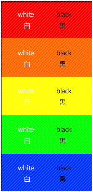 随手搞了个对比图,说明下黑、白在各种颜色底图上的显示情况。其实在每种颜色上都有一种特定的颜色是最鲜艳清楚的,但是我们这里只对比黑和白。