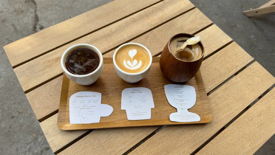 一天下来,喝了十几杯,注意到或许是上海咖啡馆的一个共性,它们普遍并不舒适——至少不是北方小城市的咖啡馆客人们所认为的那种舒适。每一家都是硬座椅还有的店无座椅。另外,小城市咖啡爱好者们甚是热衷的「拷打咖啡师」游戏,在上海我一次也没见到,不管是坐在条凳上聊天的阿姨,还是拿着手机拍照的年轻人,没人像考官一样问咖啡师:豆子烘了多久了、研磨度是多少……我想了想,原因大概有两方面吧。一来是上海的咖啡馆水平的确普遍不错,客人们信赖咖啡师已经在尽力用最优秀的原料做出最好喝的咖啡;二来,当咖啡真的已经成为日常,大家才更能单纯地喝上一杯——不管是重温旧口感还是体验新滋味,都只不过是生活中无数杯咖啡中的一杯而已。